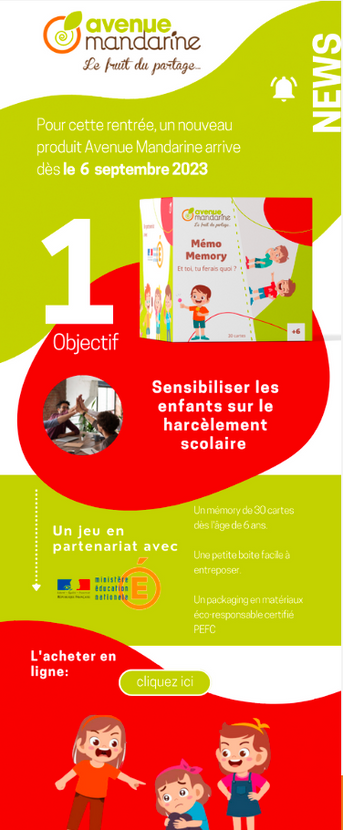 Conçu pour être simple d’utilisation, ce jeu permet d’ouvrir le dialogue et de donner aux enfants des outils concrets pour réagir aux situations de harcèlement. Il reflète ainsi les valeurs et engagements d’Avenue Mandarine en matière d’éducation et de sensibilisation.